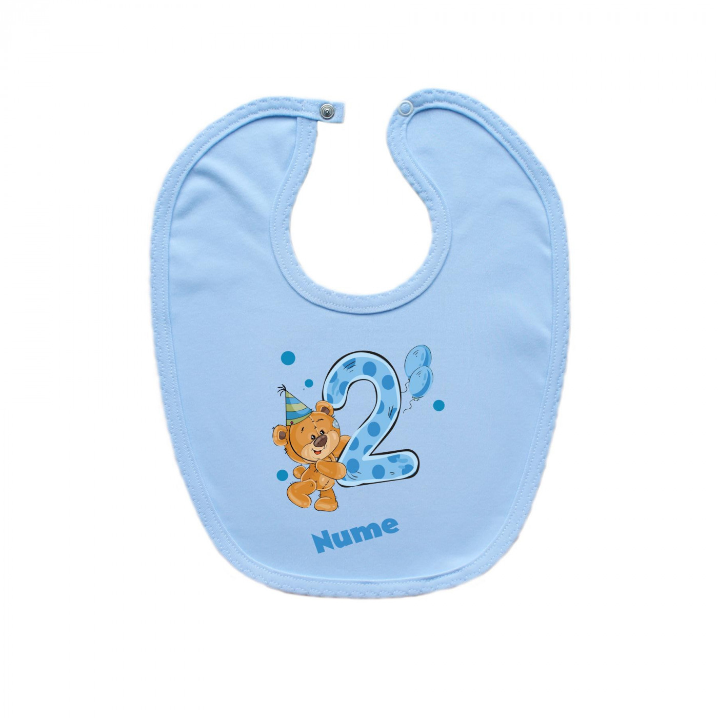 Bavetă albastră Am 2 ani cu ursuleț pentru băieței