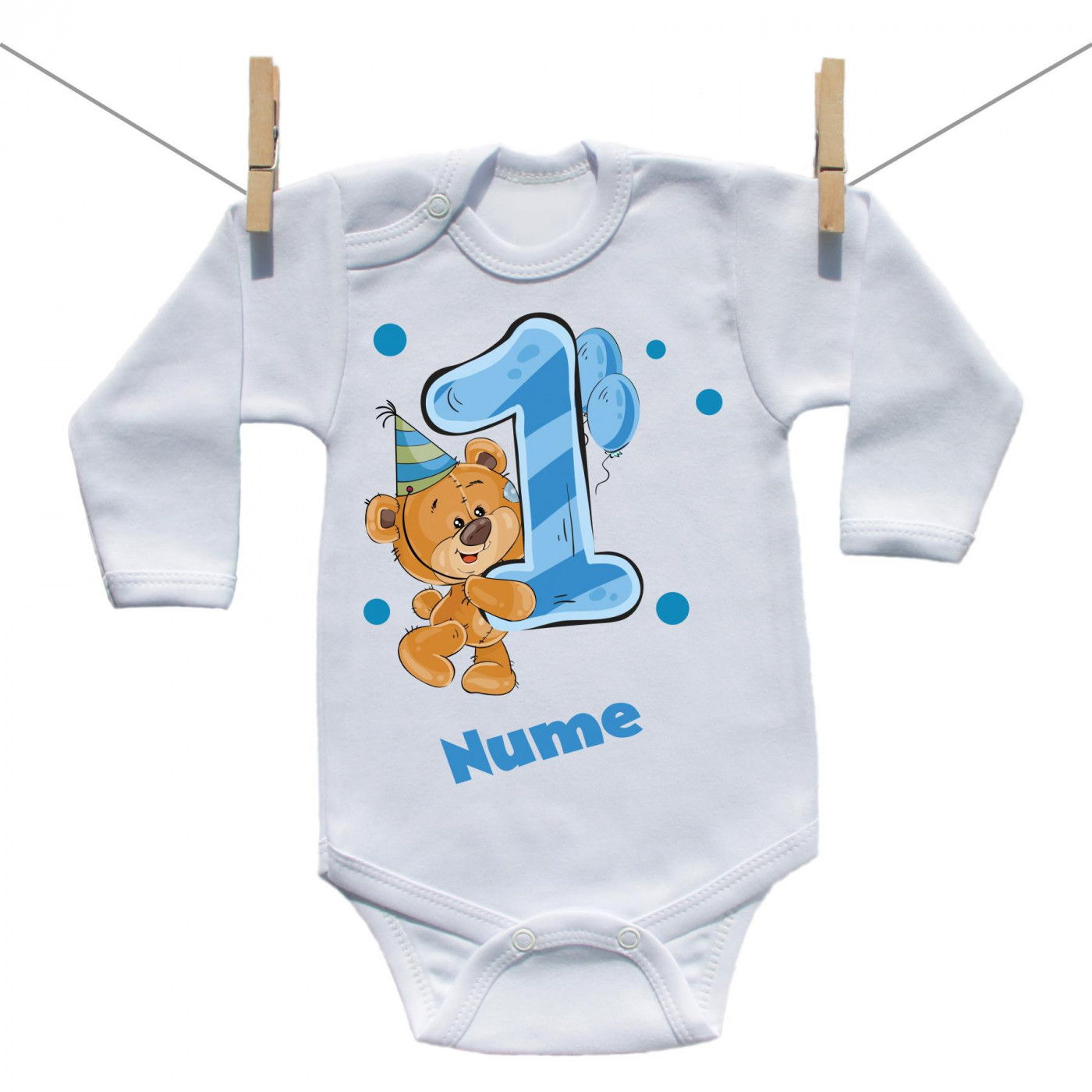 Body cu mânecă lungă Am 1 an cu ursuleț pentru băieței