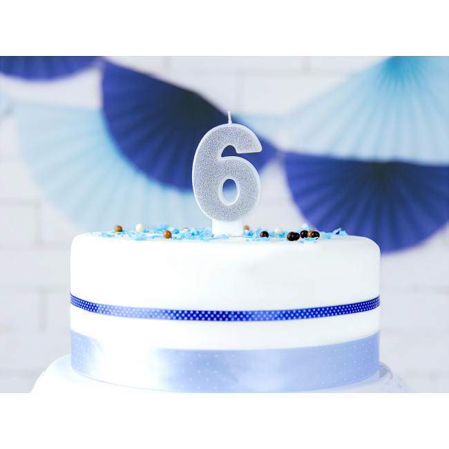 Iluminați tortul aniversar cu această elegantă lumânare argintie numărul 6!