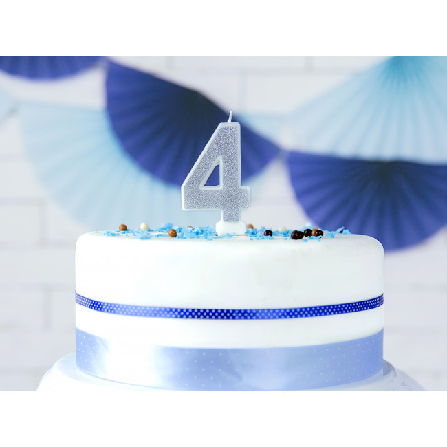Lumânare de Aniversare Numărul 4, argintie, 7cm