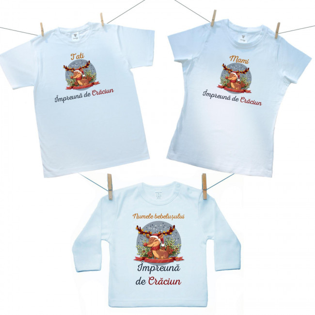 Set de familie (tricou cu mânecă lungă) Împreună de Crăciun