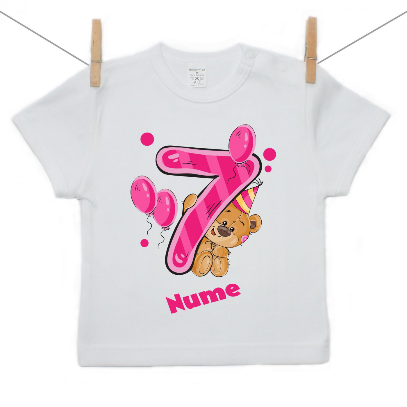 Tricou cu mânecă scurtă Am 7 ani cu ursuleț pentru fetițe
